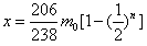 参考答案:解:设开始时矿石中有m0千克铀238,经过n个半衰期后,剩余的铀238为m,则由半衰期公式,而已经衰变掉的铀238质量为