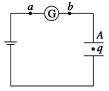 4、选择题 如图所示,用电池对电容器充电,电路a、b之间接有一灵敏电流表,两极板间有一个电荷q处于静止状态.现将两极板的间距变大,则