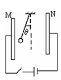 2、填空题 如右图所示,平行的两金属板M、N与电源相连,一个带负电的小球悬挂在两板间,闭合开关后,悬线偏离竖直方向的角度为θ。若保持开关闭合,将N板向M板靠近,θ角将_____;若把开关断开,再使N板向M板靠近,θ角将______。(填“变大”、“变小”或“不变” )