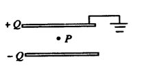 3、选择题 如图所示,一平行板电容器充电后与电源断开,这时电容器的带电量为Q,P是电容器内一点,电容器的上板与大地相连,下列说法正确的是