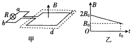 4、选择题  如图甲所示,在虚线所示的区域内有竖直向上的磁场,面积为S的单匝金属线框放在磁场中,线框上开有一小口与磁场外阻值为R的小灯泡相连。若金属线框的总电阻为,磁感应强度随时间变化的图象如图乙所示。则下列说法正确的是?