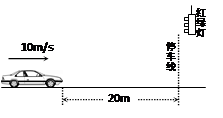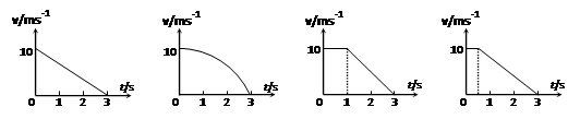 3、选择题 如右图所示,汽车以10m/s的速度沿直道匀速驶向路口, 当行至距离路口停车线20m处时,绿灯还有3s熄灭.若最终该汽车在绿灯熄灭时停止在停车线处,则该汽车运动的速度v随时间t的变化关系图象可能是(?)