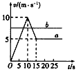1、填空题 如图所示,是A、B两物体同时由同一地点向同一方向做直线运动的v-t图象,则B物体运动的加速度为___________m/s2,经___________s物体A、B相遇,经___________s物体A、B相距最远。