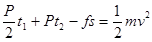 匀加速过程功率随时间均匀增加,发动机的平均功率是P/2,设总路程是s,有动能定理 (2分)