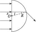 4、计算题 半径为R的玻璃半圆柱体,横截面如图所示,圆心为O 。两条平行单色红光沿截面射向圆柱面方向与底面垂直。光线1的入射点A为圆柱面的顶点,光线 2的入射点B,∠AOB=60°,已知该玻璃对红光的折射率n=