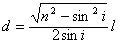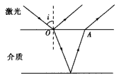 3、计算题 如图所示,一束激光从O点由空气射入厚度均匀的介质,经下表面反射后,从上表面的A点射出。已知入射角为i,A与O相距l,介质的折射率为n,试求介质的厚度d。