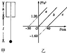 1、实验题 将一单摆装置竖直挂于某一深度h(未知) 且开口向下的小筒中(单摆的下部分露于筒外),如图甲所示,将悬线拉离平衡位置一个小角度后由静止释放,设单摆振动过程中悬线不会碰到筒壁,如果本实验的长度测量工具只能测量出筒的下端口到摆球球心的距离为l,并通过改变l而测出对应的周期T,再以T2为纵轴、l为横轴作出函数关系图象,那么就可以通过此图象得出小筒的深度h和当地的重力加速度.