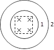 2、选择题 虚线框内有匀强磁场,1和2为垂直磁场方向放置的两个圆环,分别用Φ1和Φ2表示穿过两环的磁通量,则有: