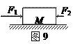 5、实验题 如图9所示,物体M受到两个水平推力:F1=20 N,F2=5 N,向右匀速运动。若不改变F1大小和方向及F2的方向,要使物体能向左匀速运动,F2应增大到原来的___________倍。