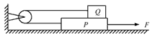 4、计算题  如图所示,位于水平桌面上的物块块P,由跨过定滑轮的轻绳与物块Q相连,从滑轮到P和到Q的两段绳都是水平的,已知Q与P之间以及P与桌面之间的动摩擦因数都是μ,两物块的质量都是m,滑轮的质量、滑轮轴上的摩擦都不计。若用一水平向右的力F拉P使它做匀速运动,求F的大小?