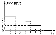 4、计算题 质量为200kg的物体,置于升降机内的台秤上。升降机从静止开始上升,运动过程中台秤的示数F与时间t的关系如图所示,求升降机在7s钟内上升的高度。(g=10m/s2)