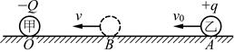 1、选择题 如图所示,一个电荷量为-Q的点电荷甲,固定在绝缘水平面上的O点。另一个电荷量为+q、质量为m的点电荷乙,从A点以初速度v0沿它们的连线向甲运动,运动到B点时速度为v,且为运动过程中速度的最小值。已知点电荷乙受到的阻力大小恒为f,AB间距离为L0,静电力常量为k,则下列说法正确的是