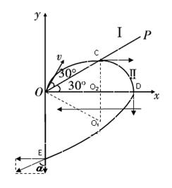 由几何关系可知:O1C⊥OX,O1C与OX的交点O2即为Ⅱ内圆弧的圆心,