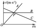 本题解析:速度—时间图象中的斜率表示物体的加速度,由题图知A、C做匀变速运动,B做匀速运动。物体的初速度可由O时刻读出。P点表示三个物体的速度相同,故只有D错。