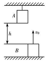 5、计算题 如图所示,A、B两物块所有的边长均为L=1 m,A的下端和B的上端相距h=20 m,若A、B同时运动,不计空气阻力,A做自由落体运动,B做竖直上抛运动,初速度v0=40 m/s,g取10 m/s2.求: