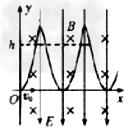 4、计算题 如图甲,在x>0的空间中存在沿y轴负方向的匀强电场和垂直于xoy平面向里的匀强磁场,电场强度大小为E,磁感应强度大小为B。一质量为q(q>0)的粒子从坐标原点O处,以初速度v0沿x轴正方向射入,粒子的运动轨迹见图甲,不计粒子的质量。