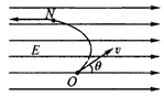 5、计算题 如图所示,一个带电荷量为-q的油滴,从O点以速度v射入匀强电场中,v的方向与电场方向成θ角。已知油滴的质量为m,测得油滴到达运动轨迹的最高点N时,它的速度大小仍为v,求: