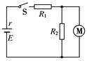 4、计算题 (8分)如下图所示,电源电动势为12 V,内电阻为r=1 Ω,R1=1 Ω,R2=6 Ω,电动机线圈电阻为0.5 Ω,若开关闭合后通过电源的电流为3 A,则R1上消耗的电功率为多少?电动机消耗的电功率为多少?