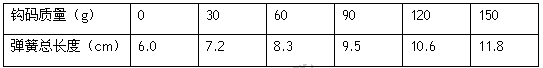 2、实验题 某同学在竖直悬挂的弹簧下加挂钩码,做实验研究弹力与弹簧伸长的关系。下表是他的实验数据。实验时弹力始终未超过弹性限度,弹簧很轻,自身质量不计。