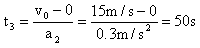 3、计算题 在正常情况下,火车以54km/h的速度匀速开过一个小站,现因需要,必须在这个小站停留。火车将到该小站时以0.5m/s2的加速度作匀减速运动,停留2min后,又以0.3m/s2的加速度开出小站,一直到恢复原来的速度,试求因列车停靠小站而延误的时间。