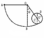 3、计算题 如图所示,长l的细绳一端系质量m的小球,另一端固定于O点,细绳所能承受拉力的最大值是7mg.现将小球拉至水平并由静止释放,又知图中O′点有一小钉,为使小球可绕O′点做竖直面内的圆周运动.试求OO′的长度d与θ角应满足的关系(设绳与小钉O′相互作用中无能量损失).