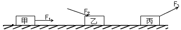 4、选择题 甲、乙、丙三个相同的物体放在同一水平面上,它们分别受到如图所示的外力作用后,均在水平面上运动,若它们与水平面间的动摩擦因数相同,则它们受到的摩擦力大小关系是
