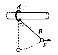 2、计算题 如图所示,在水平粗糙横杆上,有一质量为m的小圆环A,用一细线悬吊一个质量为m的球B。现用一水平拉力缓慢地拉起球B,使细线与竖直方向成370角,此时环A仍保持静止。