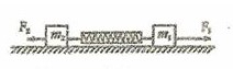 4、选择题 如图所示,两个质量分别为m1=2kg? m2=3kg的物体置于光滑的水平面上,中间用轻质弹簧秤连接。两个大小分别为F1=30N? F2=20N的水平拉力分别作用在m1? m2上,则
