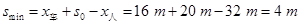 4、计算题 汽车从静止开始以2m/s2的加速度前进,同时,某人从车后相距s0=20m处开始以8m/s的速度匀速追车。讨论:人能否追上前面的汽车?若追不上,求人车之间的最小距离;若追得上,求追上所用的时间.