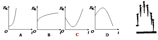1、选择题 右图显示跳水运动员从离开跳板到入水前的过程。下列正确反映运动员的动能随时间t变化的曲线是(忽略空气阻力)