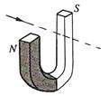 5、选择题 如图,一带正电的离子束沿图中箭头方向通过两磁极间时,它受的洛伦兹力方向