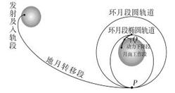 可以看出,据A所给数据可以计算出月球的质量,但因为不知道月球的半径,所以无法计算出月球的密度,故选项A错误;根据开普勒第三定律 (定值),环月段圆轨道的半径大于椭圆轨道的半长轴,故在圆轨道上的周期大,所以选项B正确;在环月圆轨道经过P点时减速,使万有引力大于向心力,卫星做近心运动,才能进入椭圆轨道,所以选项C错误;根据