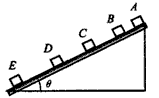 1、填空题 一个质量为m的物块由静止开始沿斜面下滑,拍摄此下滑过程得到的同步闪光(即第一次闪光时物块恰好开始下滑)照片如图所示。已知闪光频率为每秒10次,根据照片测得物块相邻两位置之间的距离分别为AB=2.40cm,BC=7.30cm,CD=12.20cm,DE=17.10cm。由此可知,物块经过D点时的速度大小为________m/s;滑块运动的加速度为________m/s2。(保留3位有效数字)