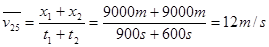 3、计算题 一列火车沿平直轨道运行,先以10m/s的速度匀速行驶15min,随即改以15m/s的速度匀速行驶10min,最后在5min内又前进2000m而停止.则该火车在前25min及整个30min内的平均速度各为多大?