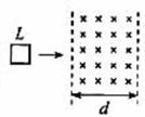 5、选择题  如图所示,在光滑水平桌面上有一边长为L、电阻为R的正方形导线框;在导线框右侧有一宽度为ddL)的条形匀强磁场区域,磁场的边界与导线框的一边平行,磁场方向竖直向下。导线框以某一初速度向右运动,t=0时导线框的的右边恰与磁场的左边界重合,随后导线框进入并通过磁场区域。下列v-t图像中,可能正确描述上述过程的是