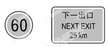 5、选择题 为了使公路交通有序、安全,道路两旁都竖立了许多交通标志.如图所示,甲图是广州市环市路高架桥上的限速标志(白底、红圈、黑字),表示允许行驶的最大速度是60 km/h;乙图是路线指示标志,表示离下一出口还有25 km.上述两个数据的物理意义是( )