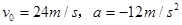 1、选择题 一个物体在水平面上以恒定的加速度运动,它的位移与时间的关系是x=24t-6t2,则它的初速度和加速度分别为: