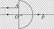 4、简答题 两束平行的细激光束,垂直于半圆柱玻璃的平面射到半圆柱玻璃上,如图所示.已知其中一条光线沿直线穿过玻璃,它的入射点是O;另一条光线的入射点为A,穿过玻璃后两条光线交于P点.已知玻璃截面的圆半径为R,OA=