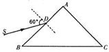 左方有一单色光源S,从S发出的光线SD以60°入射角从AB侧面中点射入三棱镜,当它从侧面AC射出时,出射光线与棱镜侧面AC间的夹角为30°.求此三棱镜的折射率并作出光路图.