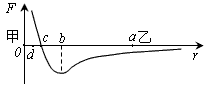 2、选择题 甲分子固定在坐标原点O,乙分子位于r轴上,甲、乙两分子间作用力与分子间距离关系图象如图中曲线所示,F>0为斥力,F<0为引力。a、b、c、d为r轴上四个特定的位置,现把乙分子从a处由静止释放,则