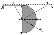 ,直径AB与屏幕垂直并接触于A点。激光a以入射角i=30°射向半圆玻璃砖的圆心O,结果在水平屏幕MN上出现两个光斑。求两个光斑之间的距离L。