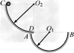 2、计算题 如图所示,AB是固定在竖直平面内半径为R的光滑半圆弧,CD是与AB在同一竖直平面内半径为1.5R的四分之一光滑圆弧轨道,其底端D切线水平,且与AB弧圆心O1等高。现将质量为m的小球(可视为质点)从圆弧CD上与圆心O2等高的C处由静止开始释放,小球落进半圆弧AB并与之内壁碰撞,碰撞过程中不损失机械能,结果小球刚好能回到D点并能沿DC弧返回C 。重力加速度g取10m/s2。试求: