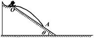 4、计算题  如下图所示,高台滑雪运动员经过一段滑行后从斜坡上的O点水平飞出,斜坡与水平面的夹角θ=37°,运动员连同滑雪板的总质量为m=50kg,他落到斜坡上的A点后不再弹起,立即顺势沿斜坡下滑。A点与O点的距离为S1=12m,A点与斜面底端的距离为S2=5.6m,滑雪板与斜坡和水平面上的动摩擦因数均为,运动员滑到斜面底端时仅速度方向变为水平,大小不变。忽略空气阻力,重力加速度g=10m/s2。(sin37°=0.6;cos37°=0.8),求: