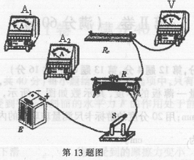 小题2:由于电压表和电流表内阻的影响,下图甲所示电路存在系统误差,为了消除这一影响,某同学设计了如下的实验方案:选择两块量程合适的电压表V1和V2,一个满足实验要求的电阻箱R,电键若干。设计如下图乙所示的测量电路,该同学进行了如下的主要测量步骤: