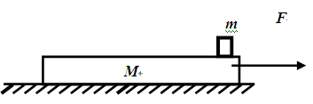 2、计算题 (12分)如图所示,质量为M,长度为L的长木板放在水平桌面上,木板右端放有一质量为m长度可忽略的小木块。开始时木块、木板均静止,某时刻起给木板施加一大小为F方向水平向右的恒定拉力,若最大静摩擦力等于滑动摩擦力。?