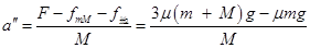 (2)(8分)若木块与木板之间、木板与桌面之间的动摩擦因数均为μ,拉力F =4μ(m + M)g,求从开始运动到木板从小木块下抽出经历的时间。