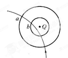 2、选择题 在点电荷Q的电场中,一个质子通过时的轨迹如图实线所示,a、b为两个等势面,则下列判断中正确的是( ).