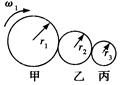 3、选择题 如图所示,甲、乙、丙三个轮子依靠摩擦传动,相互之间不打滑,其半径分别为r1、r2、r3.若甲轮的角速度为ω1,则丙轮的角速度为(? )