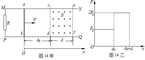 4、计算题 如图14甲所示,光滑的平行水平金属导轨