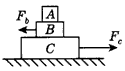 1、选择题 如图所示,A、B两相同长方体木块放在水平面上,它们的高度相等,长木板C放在它们上面.用水平力F拉木块A,使A、B、C一起沿水平面向右匀速运动,则( )